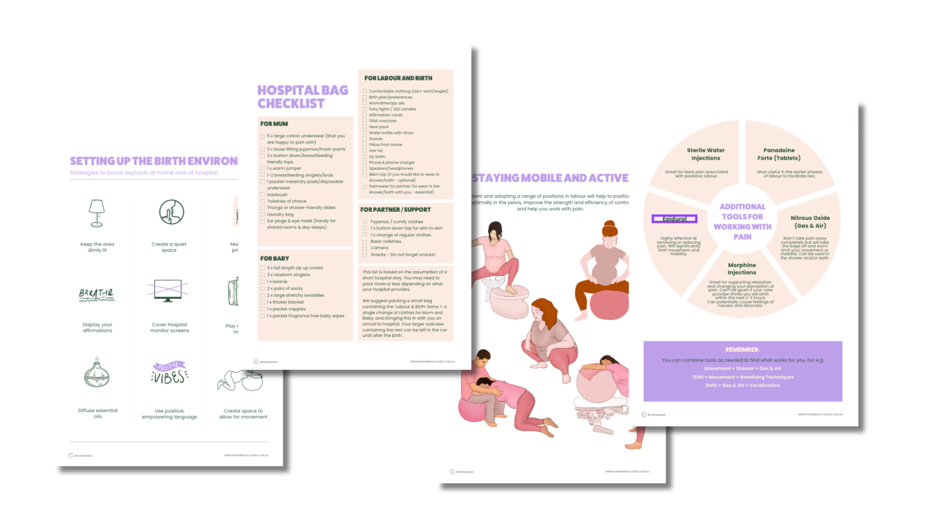 ➔ A collection of downloadable PDF resources including our PowerBirth Booklet, Hospital Bag Checklist, Perineal Massage Guide, and Supporting Birth Cheat Sheet.